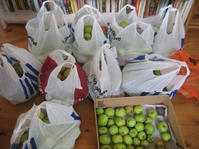 One doesn’t do much. Another is a Cox, and the apples it produces are prolific but beloved of the birds. The third is un-be-lievable. We’re talking carrier bags. So far this year I’ve given away nine, and I’m not talking half-full bags either. I’m talking bags so full the handles give way. And we’re picky when we’re picking – anything chewed, nibbled or pecked gets thrown over the wall into the wildy bit next door. Then I’m faced with the problem of what to do with what remains. A lot get given away, though my picking companion has his own problem and I can’t offload give him any. Chutney gets made, of course, and crumbles. And I’m also very fond of an apple cake which always goes down well – even though it only uses about three…